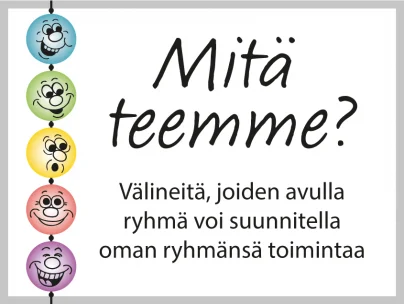 Aina ryhmä ei osaa kertoa, mitä haluaa tehdä. Silloin Mitä teemme? -kysymykset voivat auttaa ryhmää suunnittelemaan omaa toimintaansa. Kysymysten ja suuntaa-antavien vastausvaihtoehtojen avulla voi selvittää ryhmän toiveita ja tavoitteita, kiinnostuksen kohteita sekä osaamista. Myös ryhmän hiljaiset saavat helpommin ajatuksensa kerrottua. Paras ajankohta suunnittelulle on ryhmän ensimmäiset kerrat.