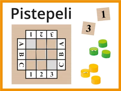 Lisää helppoja pelejä löytyy avainsanalla noppapeli. Lukuja tai laskemista vaativia pelejä ja tehtäviä löytyy avainsanalla numerot.