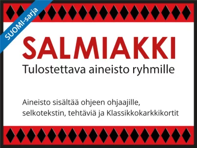 Saako salmiakki veden kielelle vai ei? Ainakin Salmiakki-aineisto tuo ripauksen suolaa elämään. Ryhmätoimintaan tarkoitettu kokonaisuus sisältää ohjeen ohjaajille, selkotekstin, tekstiä syventäviä kysymyksiä ja tehtäviä sekä huippusuositut Klassikkokarkkikortit.